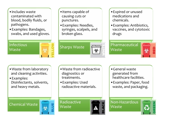 5. Disposal- Treated waste is disposed of in authorized landfills or through deep burial for certain categories.